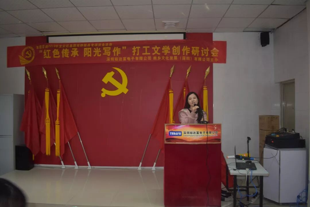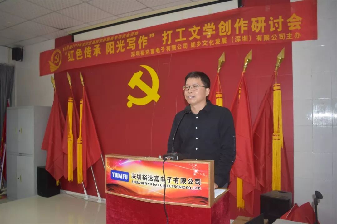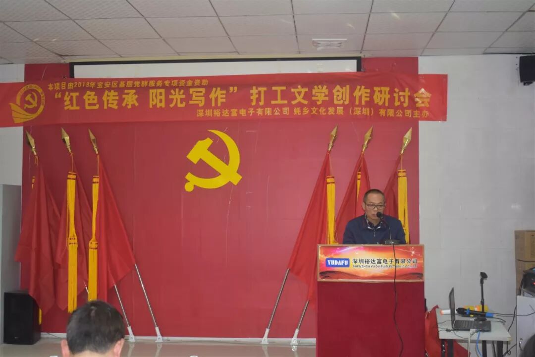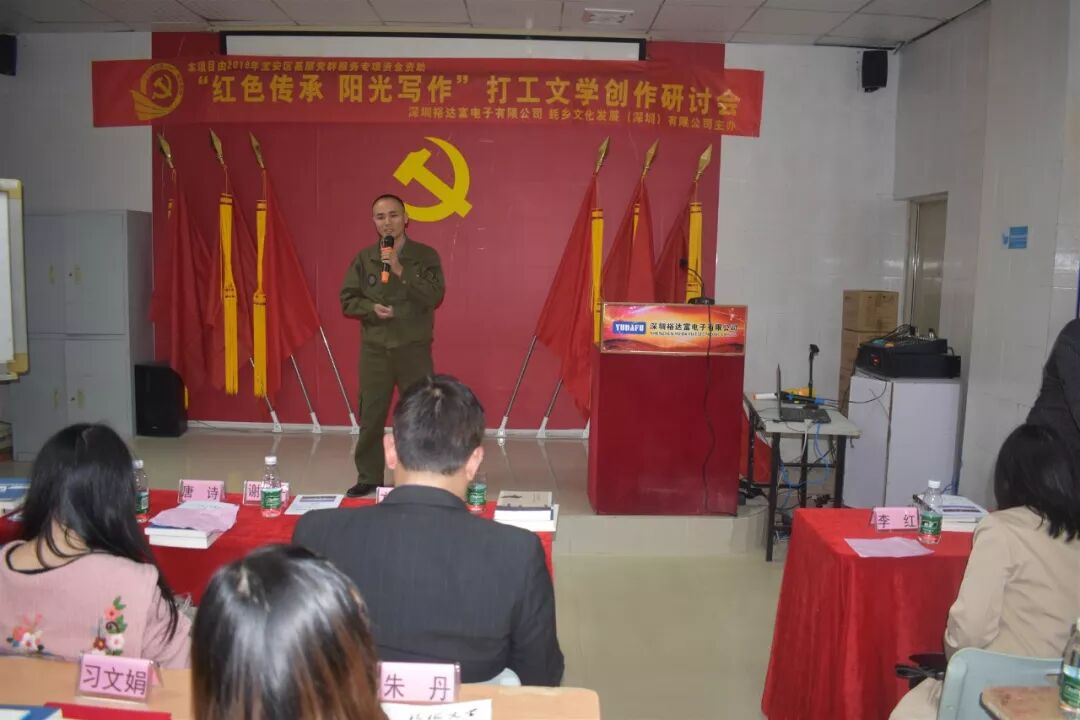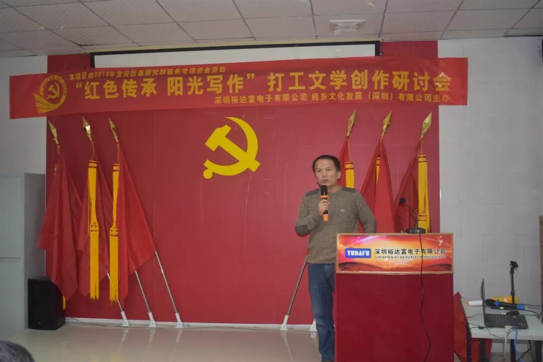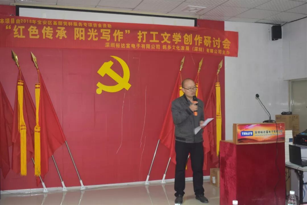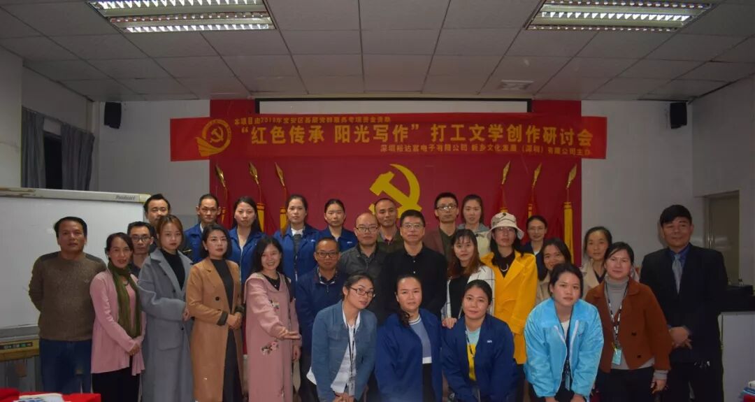 2018年12月8日下午15时30分,来自珠三角的近20名作家,与裕达富工业园区及周边企业的数十名文学爱好者欢聚沙井街道裕达富工业园区党群服务中心,参加了“红色传承阳光写作”打工文学创作研讨会。