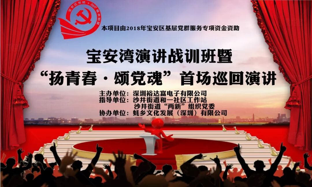 本项目面向沙井街道挑选宝安湾青工演讲团成员,特别欢迎裕达富工业园区员工和周边企业的党员、入党积极分子报名参加。