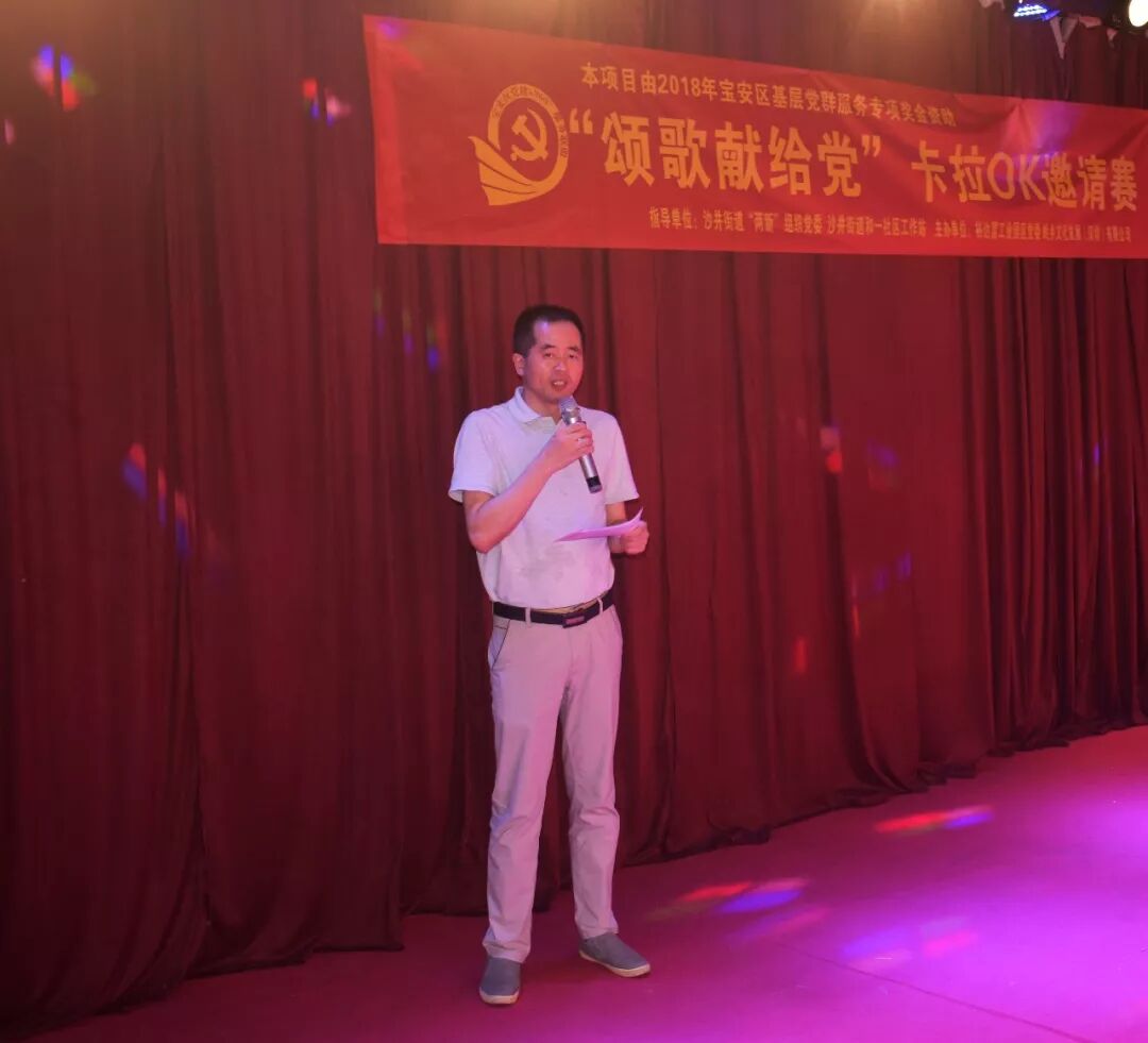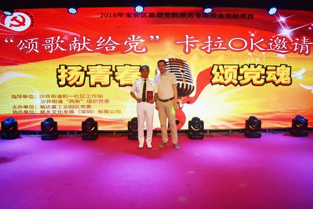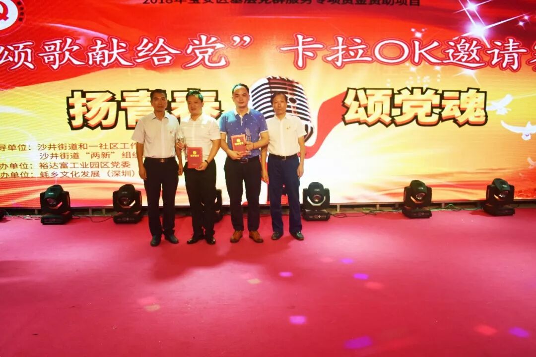 2018年9月22日下午,裕达富工业园区文化大舞台前座无虚席,来自沙井街道、新桥街道、福海街道的10余名青工歌手参加了宝安区“颂歌献给党”青工卡拉OK邀请赛,裕达富工业园区及周边企业的百余名员工观看了比赛。