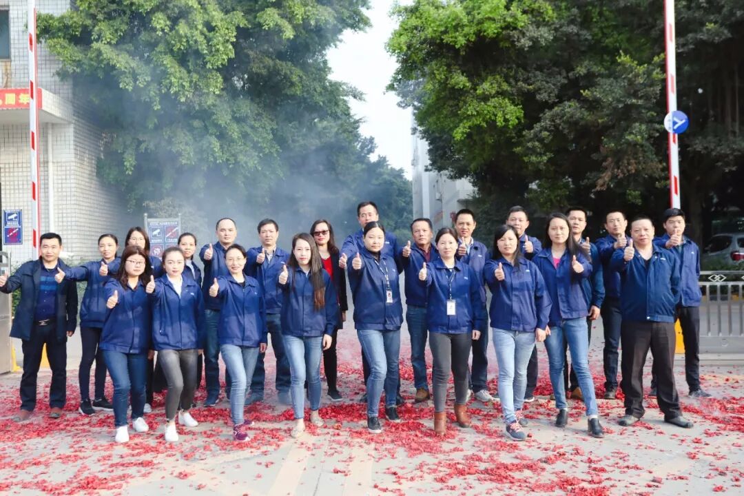 公司管理层领导一起鸣放点燃烟花礼炮,